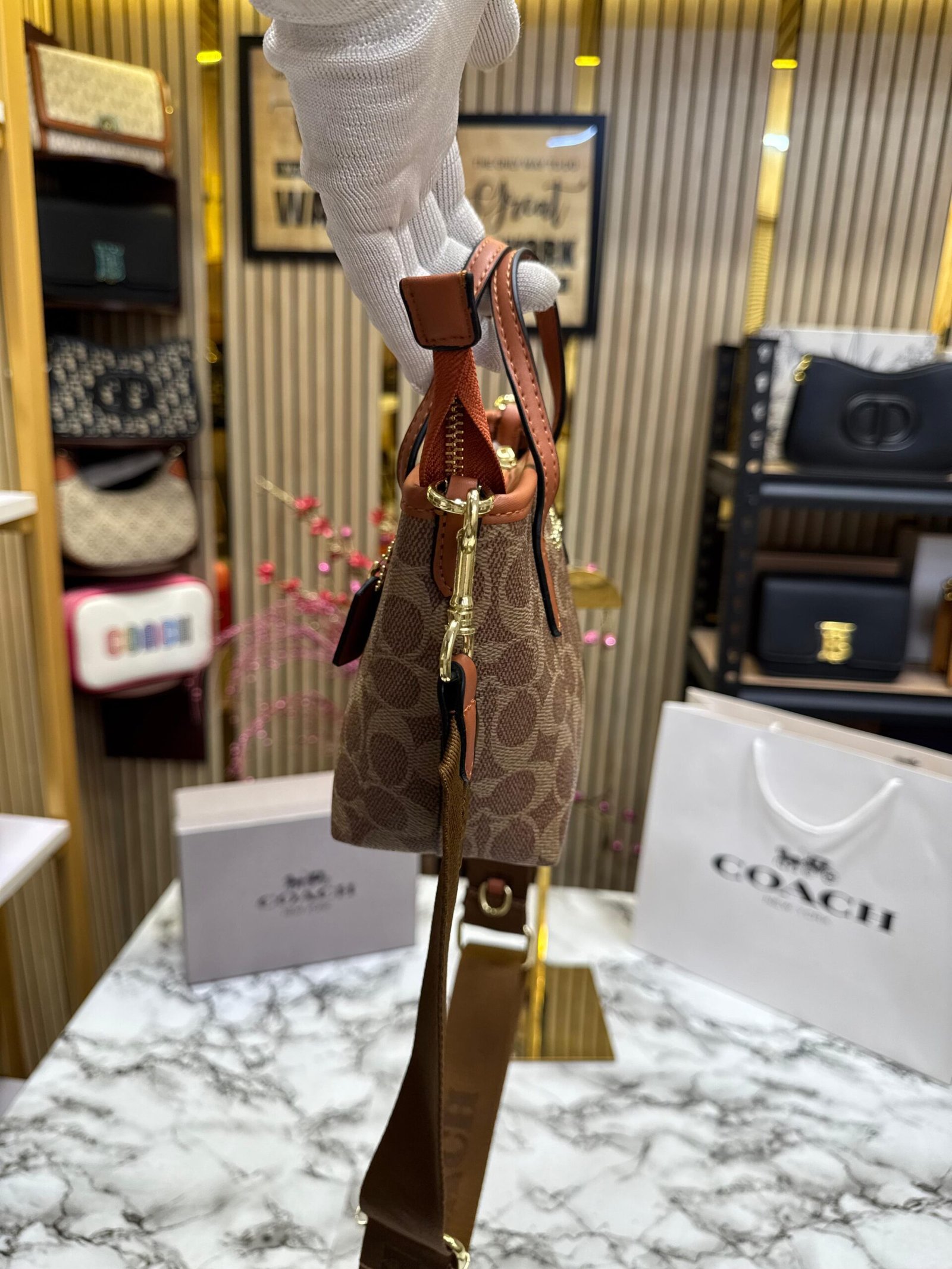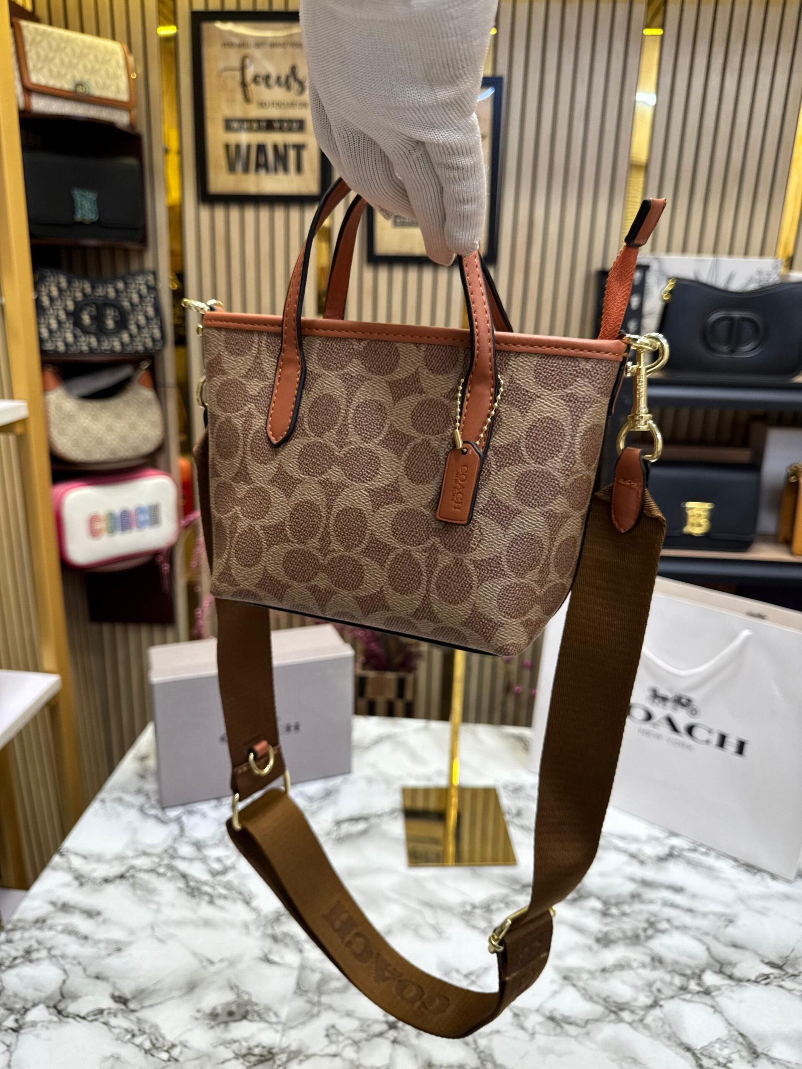 COACH CITY MINI TOTE BAG IN SIGNATURE CANVAS PREMIUM WITH OG BOX AND CARRY BAG (KHAKI )
